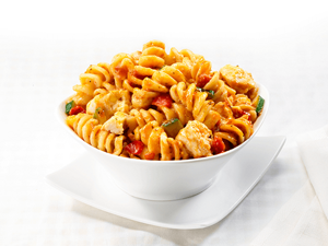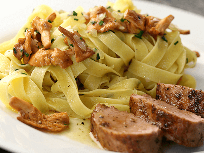 Depois de cozida, escorra a massa e sirva com os bifinhos de peru com cogumelos.