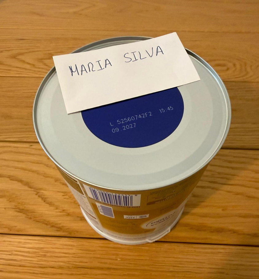 Fotografia da lata(s) a mostrar o número do lote e validade do produto, juntamento ao nome e apelidos partilhados no campo anterior. Exemplo aqui*
