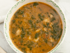Sopa de Alho Francês, Cenoura e Massinha com Salmão